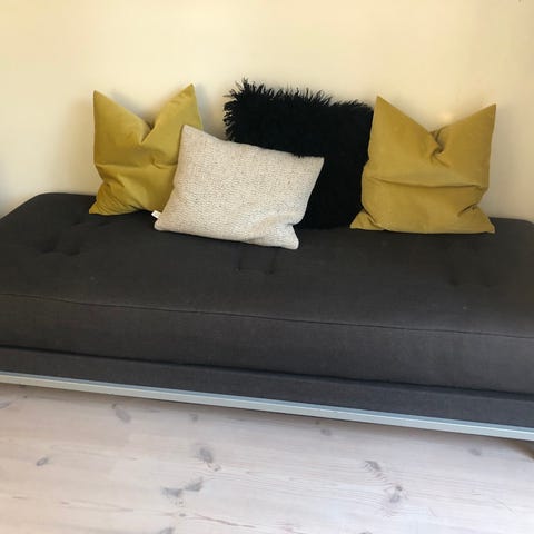 Fin sovesofa som kan ligges ud til dobbelt seng så den måler 185x205 cm.