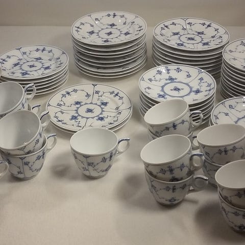Kaffestel musselmalet ,royal copenhagen ,tysk Meisen I forskellige typer.