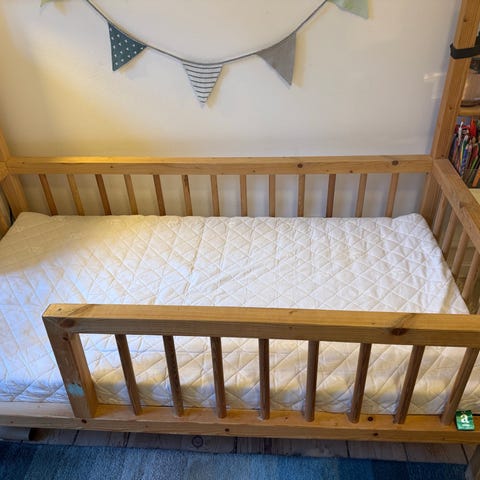 Kukka husseng I 70x140 cm sælges. Fin stand, enkelte brugsspor. Inkl. madras, markise, 2 lagner, 2 vådliggerlagn.
