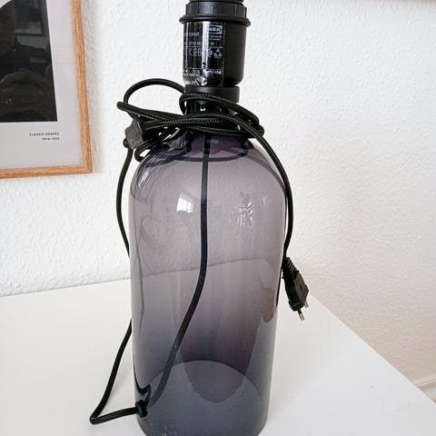 SMUK Presley Lampefod i røgfarvet glas og blank sort metalfod og fatning.