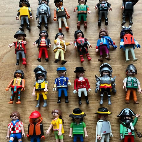 Playmobil legetøjssæt med forskellige figurer, palmer og tilbehør. Indeholder flere små dele og figurer, der kan bruges til leg og samling.