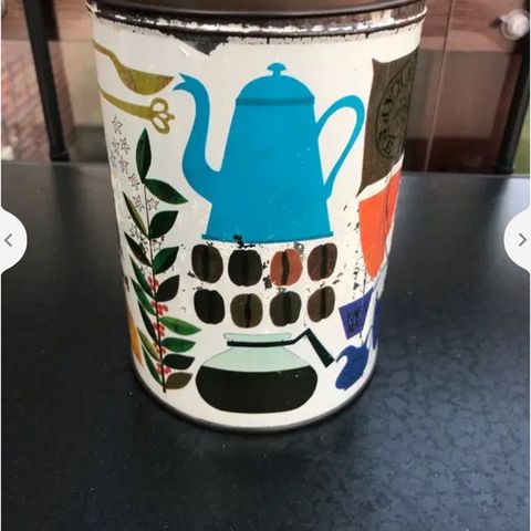 Skandi kaffedåse med patina. Måler ca 17 cm i højen og Ø11 cm. Kommer fra røg- og dyrefrit hjem.