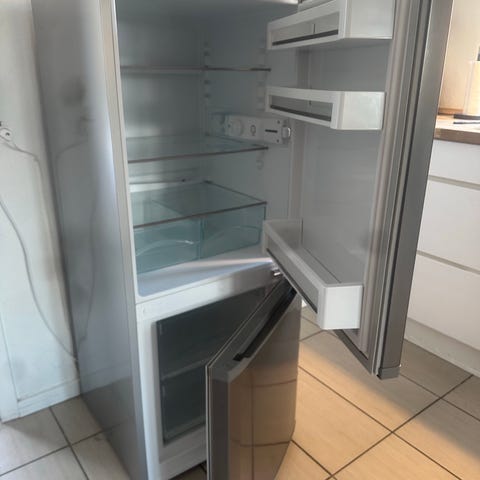 Velfungerende fritstående kølefryseskab.