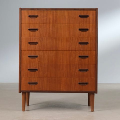 Smuk retro kommode i teak med 6 rummelige skuffer, produceret af Westergaard Møbelfabrik.