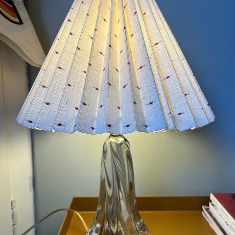 Smukkeste vintagelampe i glas med håndlavet skærm i Rose Drop