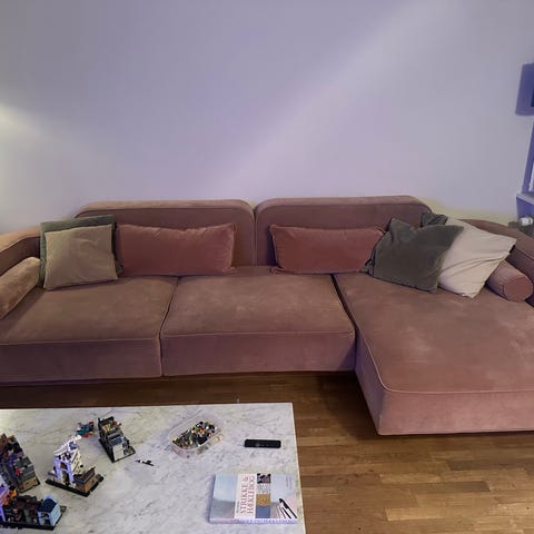 Super flot Formel A (325) sofa med chaiselong, i flot blålig farve.
