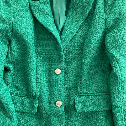 Flot Grå blazer med lange ærmer og to knapper foran fra Alexander Wang. Den har en unik krave og to lommer. Brugt, alm brugspor, ingen defekter. De 2 knapper er lidt slidte og bør skiftes. Ellers fejler blazeren intet. Mål på billeder.