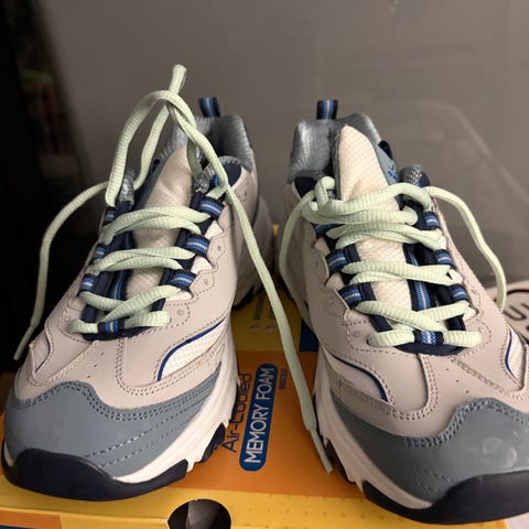 Næsten nye, anvendt få gange indendørs. Løbe-/trænings gummisko til herre, str 43. Hvidt kunstlæder, blåt velpostret foer. Ingen krakelleringer, såler helt intakte uden brugsspor.