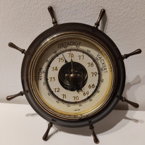 klassisk barometer - ny - ligger stadig i æsken - Mahogni? - højde ca. 50 cm