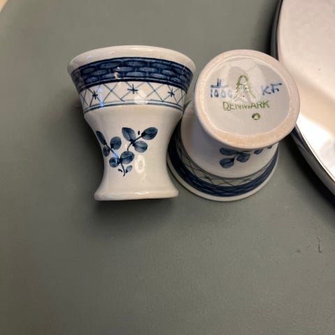 2 stk. Blå Tranquebar æggebægre nr. 11/1006