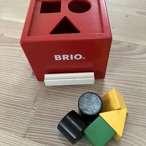 BRIO Putte/klodskasse i træ med de 6 klodser. I super stand. Pris: 50 kr kontant ved afhentning. Se gerne mine andre annoncer. Sender først ved køb for 100 kr før Porto og kun med gls.