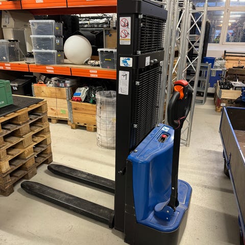 BT Lifters palleløfter i rød farve. Designet til håndtering og løft af paller i lager- og industrimiljøer. Robust konstruktion til effektiv transport af gods. Virker perfekt og der medfølger lader.