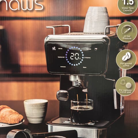Kraftige 1350 watt motor, intuitive touch-kontrolpanel, indbygget steamwand, 20 bar tryk og en 1,5 liters vandtank