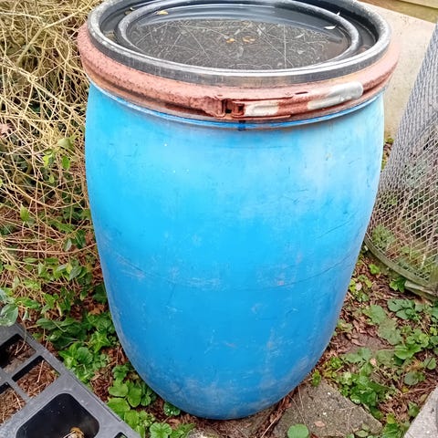 Kan måske bruges som fodertønde, regnvandstønde, opbevaring af kartofler?
