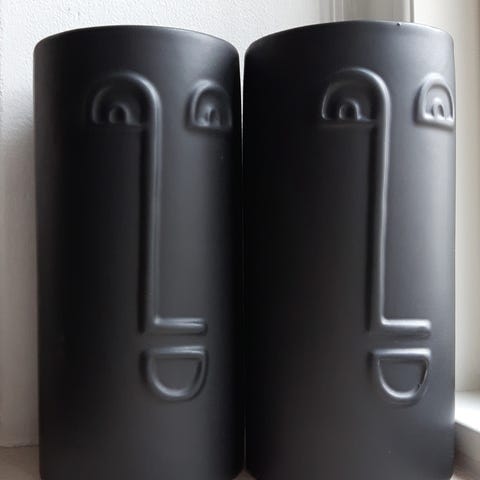 2 stk Sjov Stor design keramikvase fra serie m. Finurligt Spøjst Glad ansigtsudtryk. Fin størrelse til tulipan roser m.m.