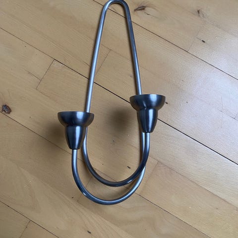Georg Jensen lysestage med to holdere. Fremstillet i rustfrit stål med et moderne og enkelt design til vægophæng. Modellen er Swing -designet af Jens Jensen.