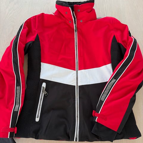 Super flot skijakke fra Luhta. I hvid med grå indlæg. Det er en størrelse 42, men er lille i størrelsen. Den fremstår som ny, da den kun er brugt at par gange. Nyprisen var ca. 2000 kr. og købt i Østrig. Kan sendes på købers regning.