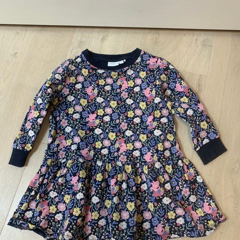 Name It multifarvet kjole i bomuld til piger i størrelse 152. Kjolen har et mønster med fugle og blade og er velegnet til daglig brug.