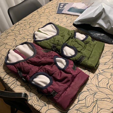 Ollipet vinterjakke i fleece. Størrelse L. Ryglængde 45 cm. I fin stand. Den har kun har været brugt 1 gang, da den er for stor.