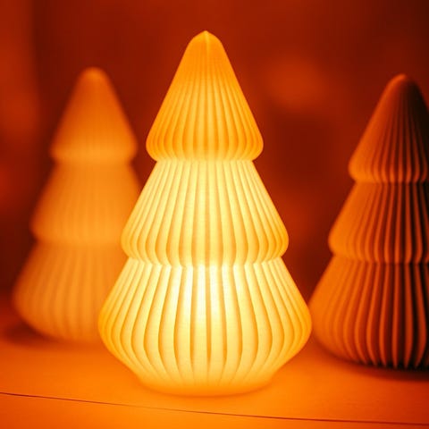 Dette håndlavede 3D-printede juletræ giver en varm og hyggelig glød, når LED tealyset tændes. Perfekt til:
