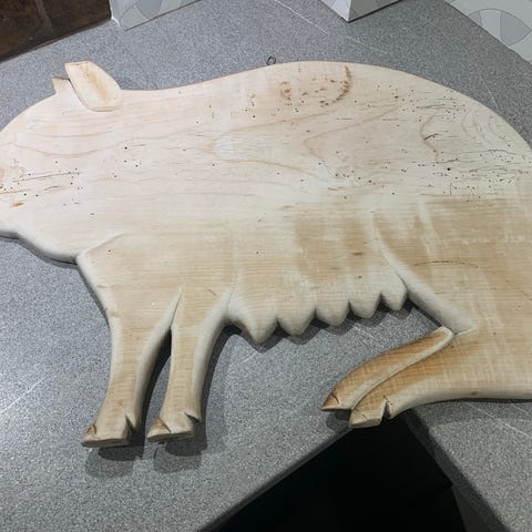 Træskæreredskab lavet af træ med et håndtag i træ. Redskabet har en flad, bred skæreflade og er designet til håndbetjent brug.