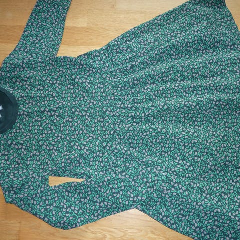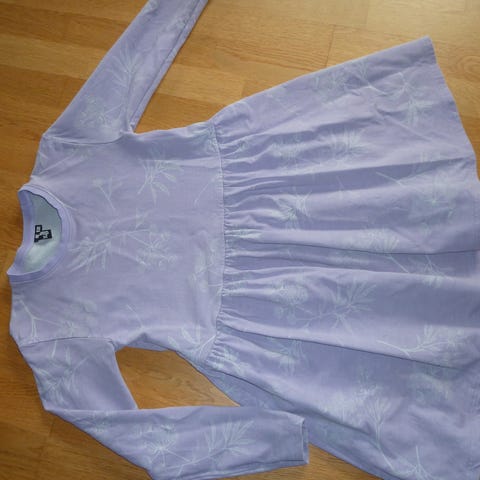 Danefæ Blå Bomuld/viskose Kjole til piger i størrelse 152. Kjolen er blå med hvide blomster. Den har korte ærmer og en løs pasform med en rynket nederdel.