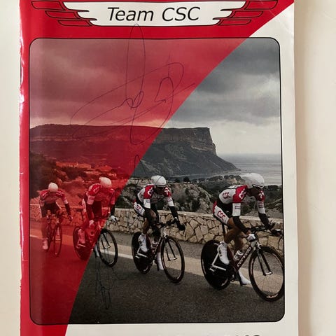 Team CSC Tiscali kasket med autografer