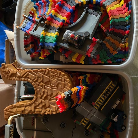 Kæmpe samling af flexitrax bane og masser af tunneller, broer og specielle ting. Mange forskellige temaer. 2 kasser fulde 56x39x42 eller ca 130 liter. Kasser følger dog ikke med men mere for at illustrere hvor meget der er.