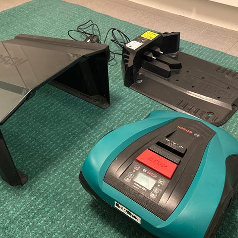 Bosch garage til robotplæneklipper. Brugt til en Bosch Indigo M+700. UV-materiale. Beskytter din plæneklipper mod sol, vind og vejr.