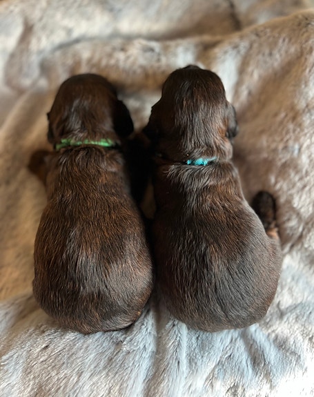 Hvalpene bliver vaccineret, chipmærket til dansk hunderegister og får sundhedsattest med fra dyrlægen. Derudover får de 3 x ormekur inden afrejse. De får bamse og tæppe med deres søskendes duft med.