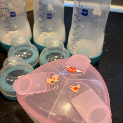 10 MAM-sutteflasker i 3 forskellige størrelser (1 er uden låg)