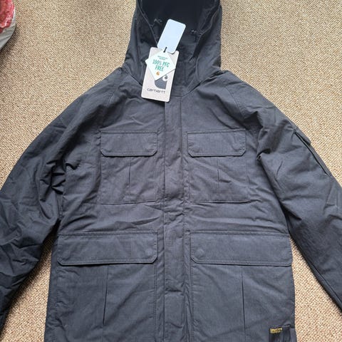 Carhartt Roma sweatshirt i mørkeblå farve, størrelse XS. Fremstillet i bomuld. Designet til mænd/Drenge.