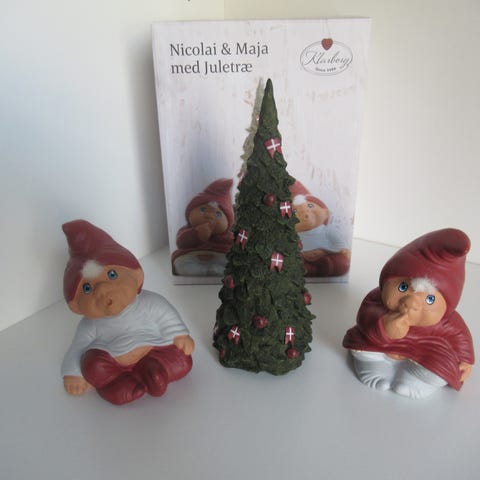 Malene & Marius Nissehus juledekoration med små nissefigurer, juletræ og gaver. Materiale i træ og plastik og er designet af Etly Klarborg.