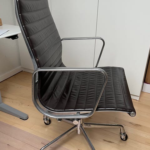 Eames Vitra EA-107 Aluminium Chair kontorstol cognac læder