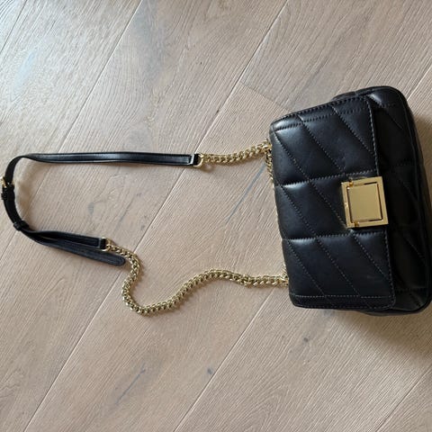 DKNY skuldertaske til kvinde lavet i læder. Tasken har en kæde som rem og en lukning foran. Den har et enkelt og klassisk design med logo på fronten.