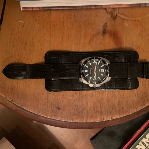 Vandtæt til 50 meter. Uret er kun brugt ganske lidt og er i god stand. Uret mangler nyt batteri, og bør virke fint derefter.