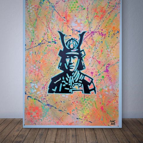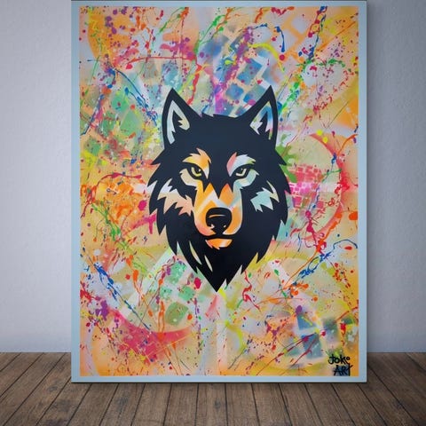 Spraymaling, akryl og Posca – afsluttet med to lag beskyttende lak.