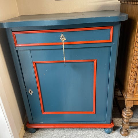 Smuk egetræskab med to låger og skuffe