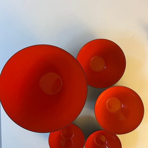 Der er ingen mærker i kanten på skålen men lidt brugsspor nede i skålen. Dette ses dog kun ved helt tæt inspektion i lyset. Det er forsøgt fotograferet.