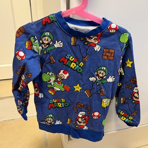 Super Mario bluse 134 & 2 stk stumpe bukser str 2 & 5 år .