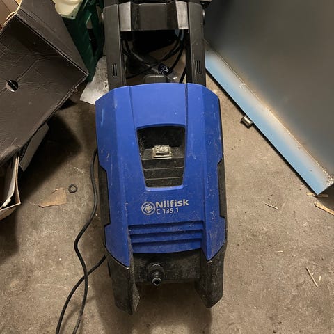Nilfisk C120 højtryksrenser i blå farve. Velegnet til rengøring med højtryksvandstråle. Mangler slange