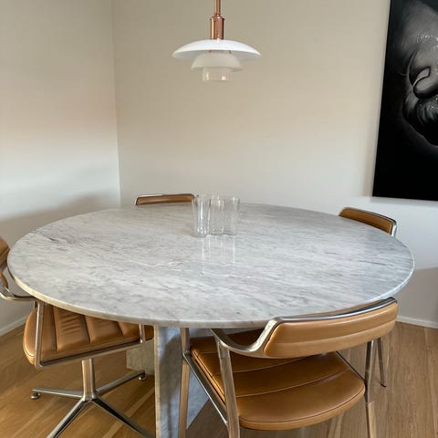 Vintage spisebord i rød marmor, Rosa Alicante - en klassisk sydspansk marmor, meget brugt i vintage borde fra 70’erne og 80’erne.