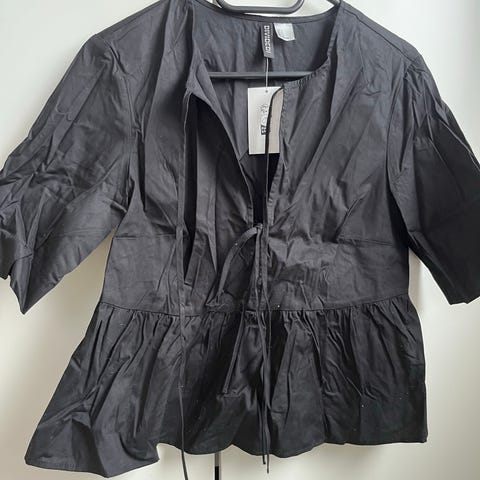 Bluse/skjorte/tunika fra H&M, med lange ærmer og knap-lukninger. Den er sort og hvid-mønstret, og meget let i stoffet.