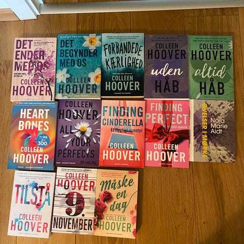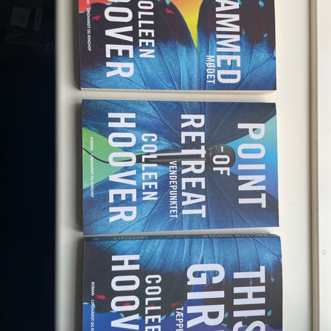 Sælger disse Colleen Hoover engelske og danske bøger. De er alle nye. Plastiken på bogen “ugly love” er gået en lille smule op bagpå som kan ses på billedet. Skriv hvis i har spørgsmål☺️