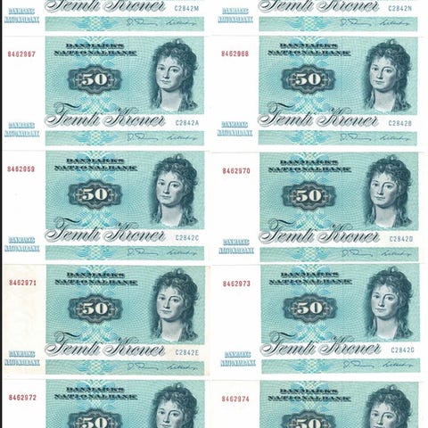 Sedlerne er delvis fortløbende og ucirkulerede, og derfor nye. 90kr i pålydende
