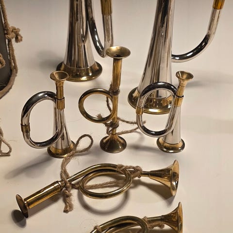 Super hyggeligt julepynt bl.a. vintage trompeter, trommer og stjerner. Pris per stk: