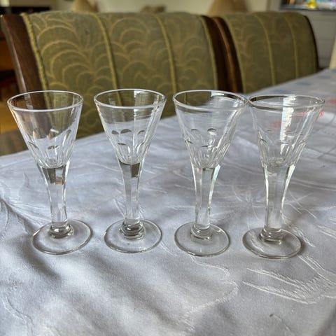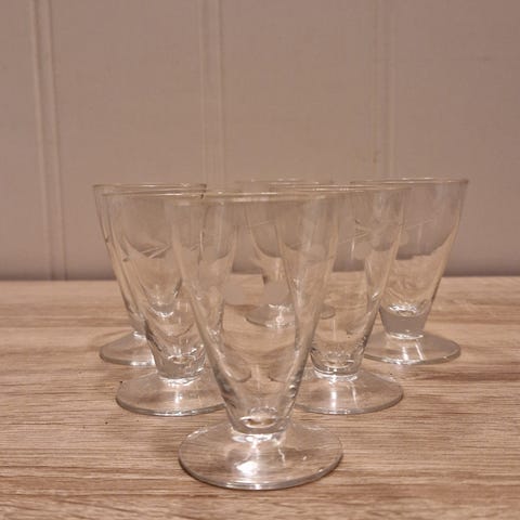 I bunden af glassene er der stemplet - France. Hver glas rummer ca 4 cl væske.