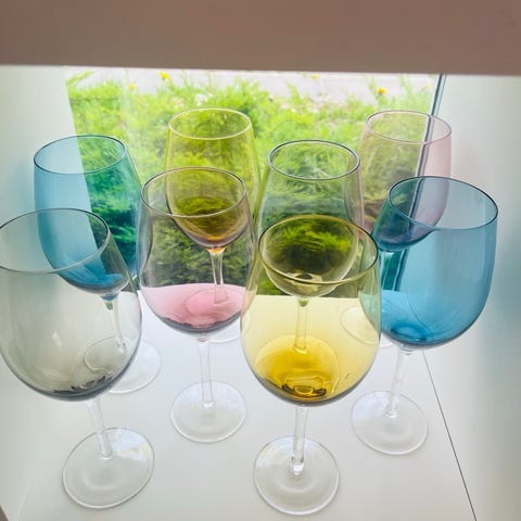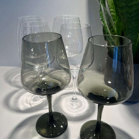 Ti smukke ubrugte rødvinglas fra HK Living som ser godt ud på et lagt bord.