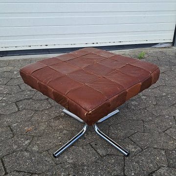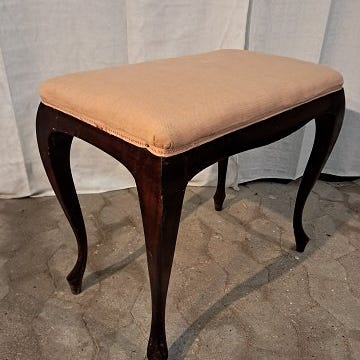 Skammel i bøgetræ og kunstlæder, fra 1920erne.