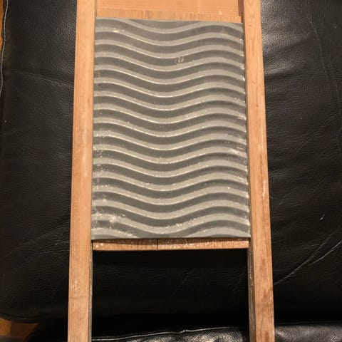 vaskebræt i zink og træ, ukendt, Nostalgisk vaskebræt som måler 58 x 31 cm